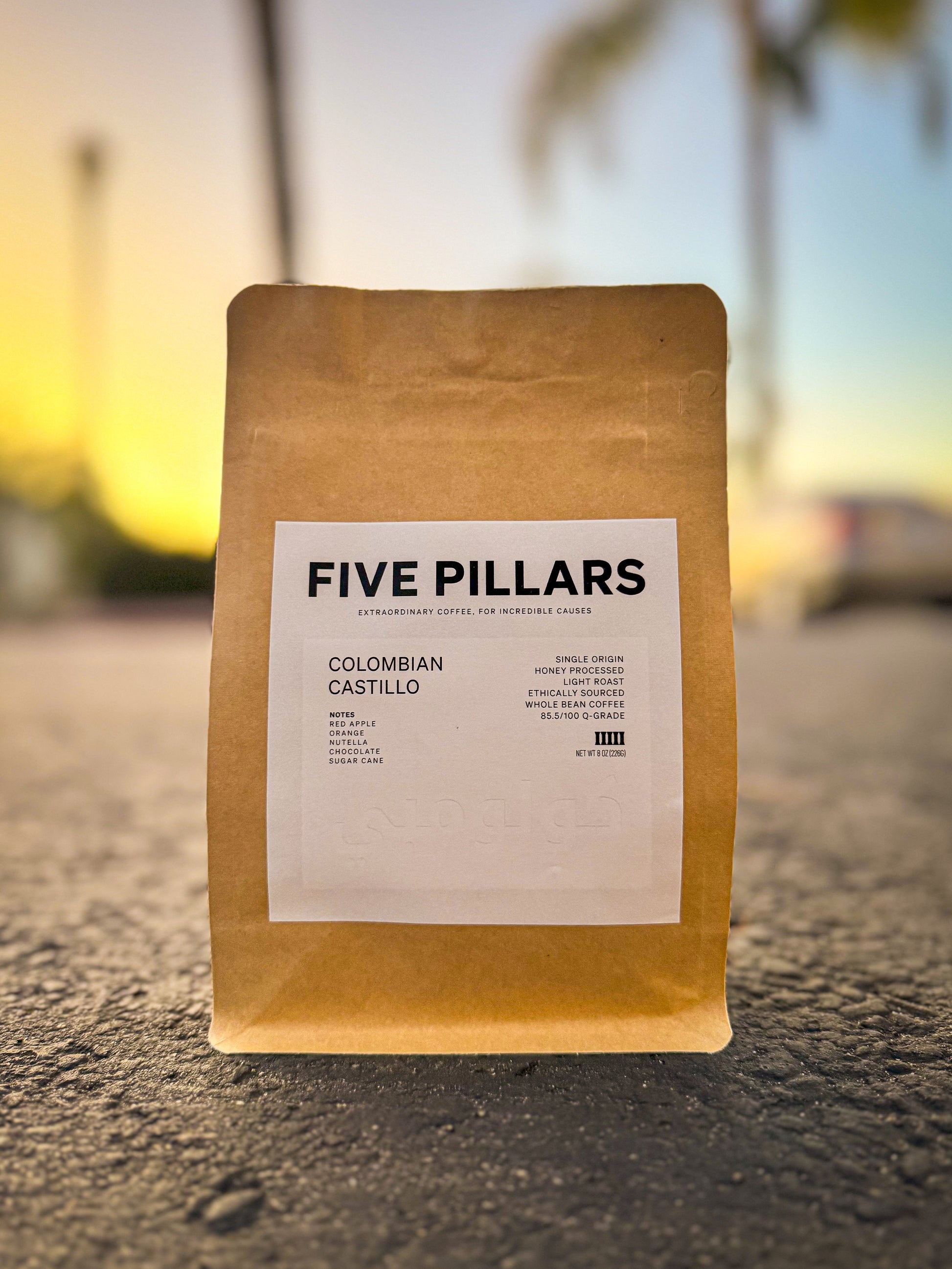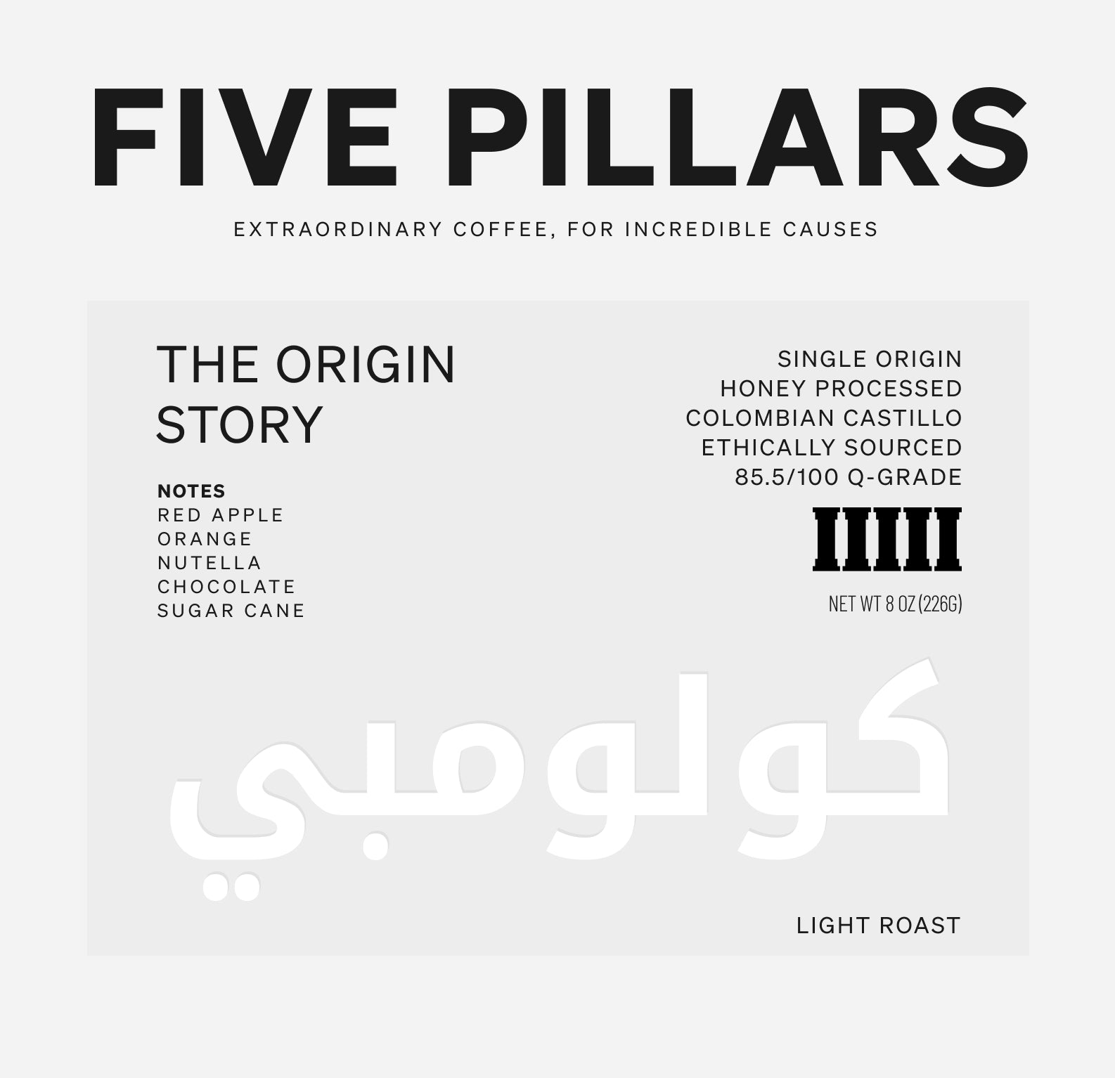 The Origin Story sets the foundation for Five Pillars, the first coffee we have ever released! This light roast, single-origin coffee is sourced from the fertile hills of Medellín, Colombia, and crafted from Honey-Washed Castillo beans.
